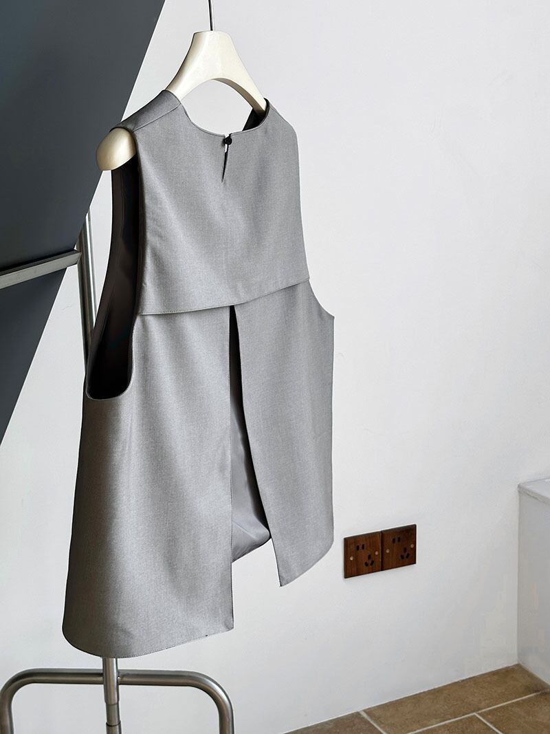 コーディネートにアクセントを加える、バックスリットデザインが魅力のAラインベスト。