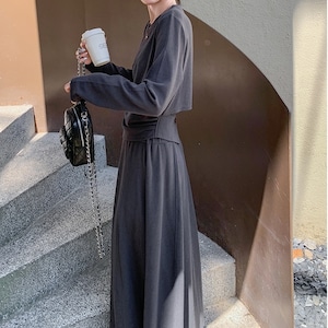 ゆったりとしたドレープ感が魅力のセットアップ。 背中がチラリと見えるデザインが、後ろ姿にアクセントを加え、どの角度からも美しさを際立たせます。 ■カラー ダークグレー ■サイズ(cm) トップス S:着丈46 肩幅37 胸囲80-88 袖丈56 M:着丈47 肩幅38 胸囲88-96 袖丈57 L:着丈48 肩幅39 胸囲96-104 袖丈58 XL:着丈49 肩幅40 胸囲104-112 袖丈59 スカート S:着丈87 ウエスト60-68 M:着丈88 ウエスト68-76 L:着丈89 ウエスト76-84 XL:着丈90 ウエスト84-92 ■素材 ポリエステル ============================ ramis 人気アイテムはこちら https://ramisluxury.base.shop/categories/6165357 ============================ 【注意事項】 ご購入前にこちらを必ずお読みください https://ramisluxury.base.shop/about ・こちらの商品は海外店舗より発送となる為ご入金から10日~14営業日前後でお届け致します。 (※商品の状況によっては、3週間以上かかる場合もございます。) ・弊社は海外に倉庫があり、注文が入り次第、取り寄せの準備を行っております。 ご注文いただいた後、商品在庫切れにより注文キャンセルとさせていただく恐れもございますので、予めご了承くださいませ。 ・こちらは輸入品となります。日本製とは検品基準が異なる為 新品未使用品でもごくわずかな汚れや ほつれがある場合もございます。 ・仕入れ工場を変えることがあるため、記載サイズと若干異なる場合がございます。(約-3cm~+約3cm) ・商品の色味は、お手持ちのデバイスの画面によって実物と若干異なる場合がございます。 ・クリーニング店推奨、または冷水での手洗いをお願いいたします。漂白不可。 ・イメージ違いやサイズ交換等、お客さまのご都合による交換、返品は対応出来かねます。 品番:R0110